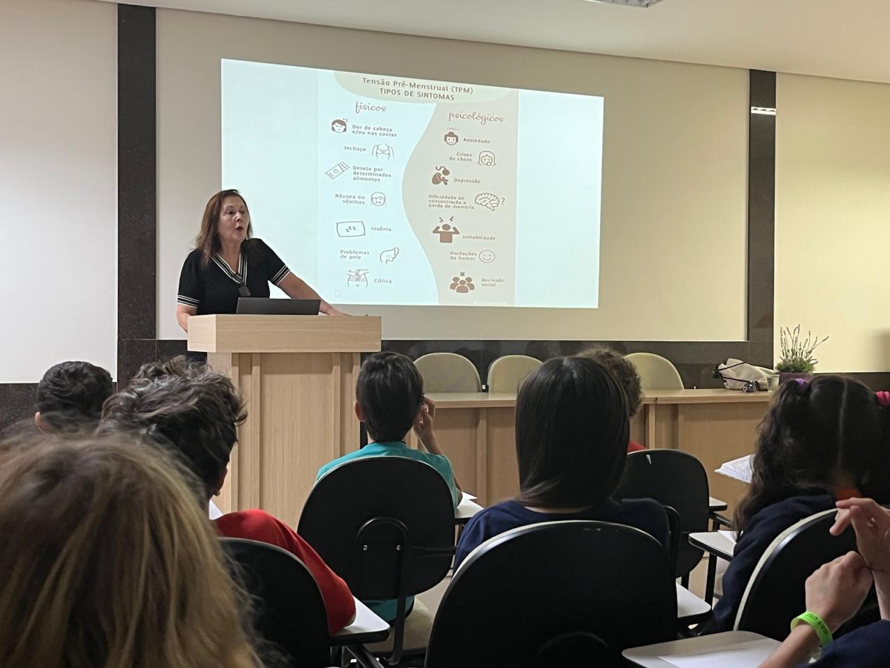 A atividade contou com a presença da Dra. Sylvia Cavalcanti, ginecologista, sexóloga e hebiatra, especialista no atendimento a adolescentes, que conduziu uma conversa leve, esclarecedora e cheia de significado. Com sensibilidade e escuta atenta, a médica respondeu às dúvidas dos alunos e trouxe orientações importantes sobre o corpo, a saúde e o cuidado de si, em um ambiente de acolhimento e respeito.