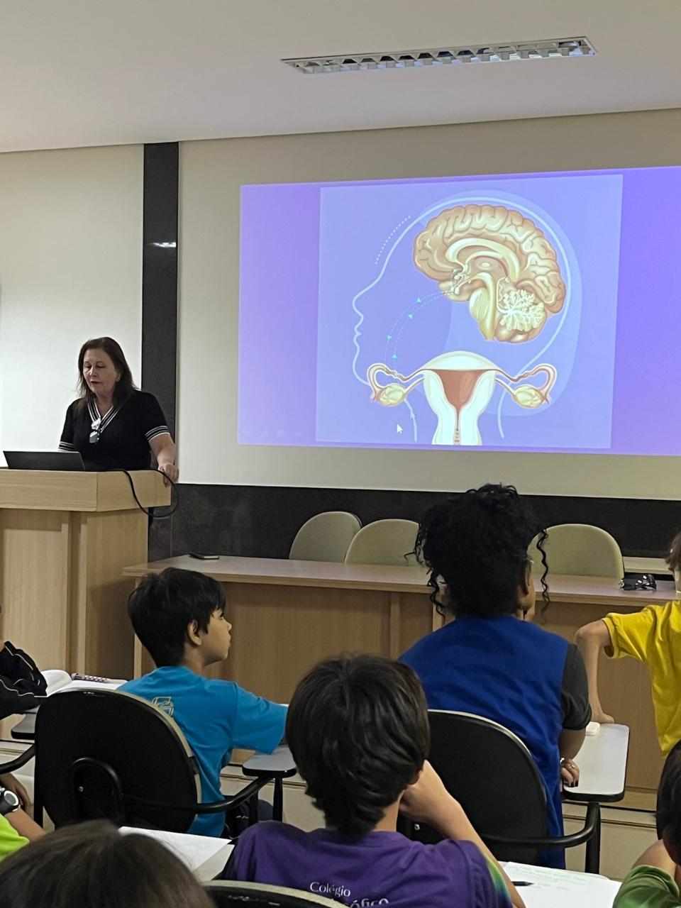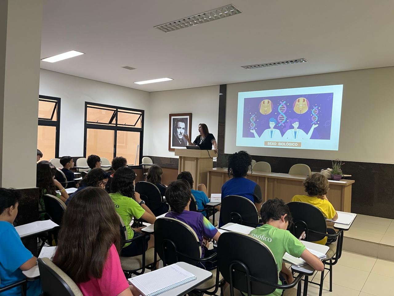 Os alunos do 5º ano A e B, orientados pelas professoras Keila Cruvinel, Ana Isabelly Bueno e Mikaele Gomes, participaram de um encontro especial no miniauditório do Colégio Logosófico, no dia 15 de setembro, como parte do Projeto Afetivo-Sexual, desenvolvido na disciplina de Ciências.