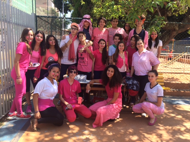 Ao pesquisar sobre o Outubro Rosa, o 9º Ano escolheu esse tema para a atividade da semana, onde todos teriam de vestir uma peça cor de rosa.