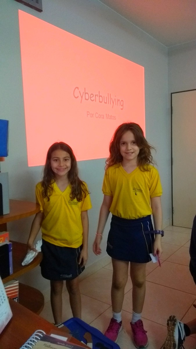 As alunas do 4º Ano, Cora Matos e Ana Katharina Pereira Navarro, trouxeram para a turma a resposta ao questionamento: O que é cyberbullying?
