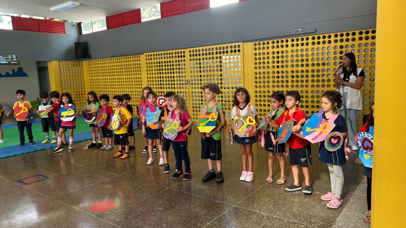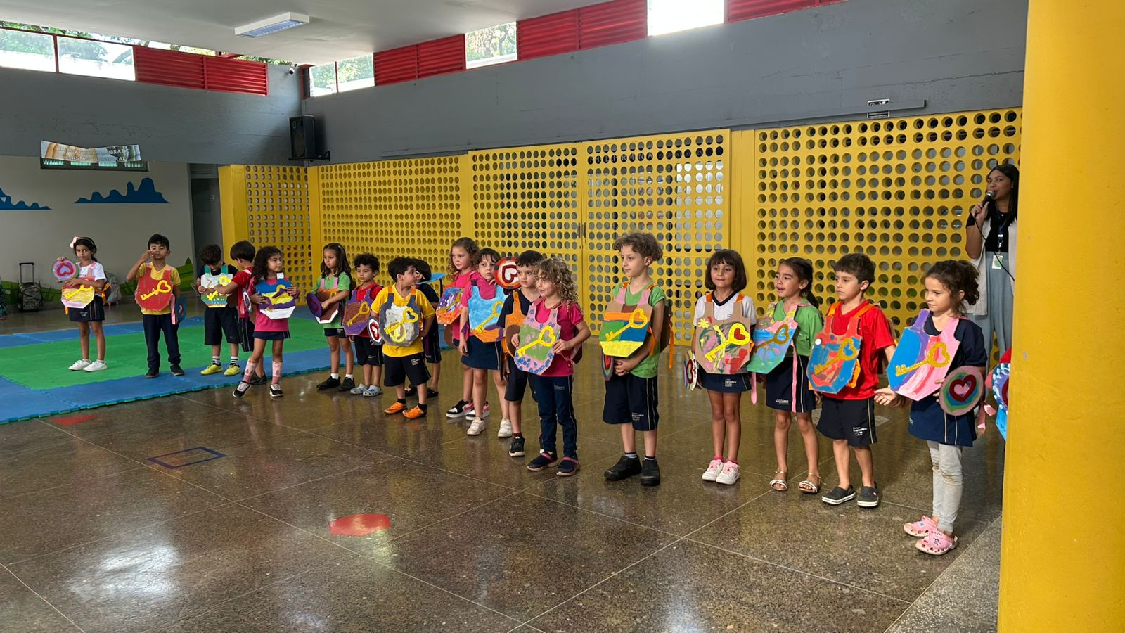 Em seguida, os alunos dançaram a música do personagem usando escudos e armaduras confeccionados ao longo do projeto, símbolos das defesas internas trabalhadas durante o ano, como paciência, autocontrole e boa vontade. A celebração foi finalizada com um piquenique coletivo, preparado com carinho pela escola, em um clima de união, alegria e afeto.